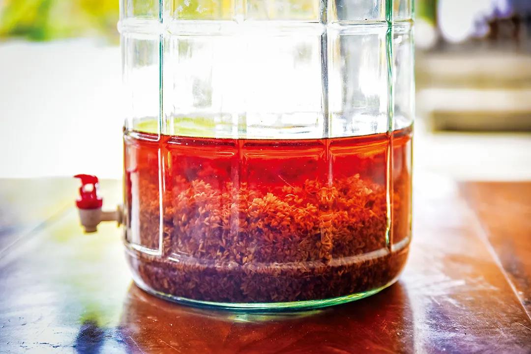 楸木柜是第二道密封;蓋上柜門,上面還要鋪一塊布,這是第三道密封。整個(gè)燉煮的過(guò)程中,土罐不能被打開(kāi),但杜成興每過(guò)半小時(shí)要開(kāi)柜看一次,給油燈加油。油燈使用的燈芯由杜成興自制,采摘燈芯草,剝皮、曬干就能用了。油燈使用的是臭油。