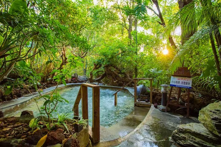 這里是天然的 “解壓秘境”,95% 的森林覆蓋率造就負(fù)氧離子爆棚的生態(tài)環(huán)境。19 個特色泡池藏于原始林海間,溫度恒定在 38℃-45℃的舒適區(qū)間:玫瑰池芬芳浪漫、牛奶池滋養(yǎng)肌膚、薰衣草池舒緩神經(jīng),艾草精油池驅(qū)散疲憊;功能性的漩渦池、泡泡池增添互動樂趣,原湯池則還原溫泉本味,6 種泉質(zhì)各有妙用 —— 可直飲的小蘇打泉清甜甘冽,硅酸泉滋養(yǎng)潤膚,硫磺泉舒緩肌理,滿足團(tuán)隊(duì)不同需求。